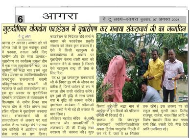 4. गुरुदीपिका योगक्षेम फाउंडेशन ने वृक्षारोपण कर मनाया ज्योतिष्पीठाधीश्वर जगद्गुरु शंकराचार्य स्वामिश्रीः अविमुक्तेश्वरानंद सरस्वती जी महाराज का प्राकट्योत्सव (7.8.2024)
